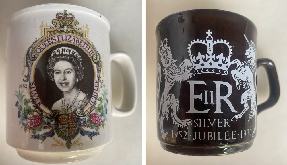 We were each given a bookmark, a commemorative mug and a 50p coin. Not sure what happened to them, but my mother prudently stashed them away for us! … and here they are: