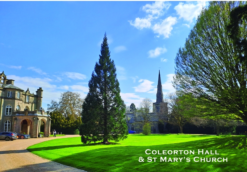 This shows the North side of St Mary's Church and the entrace portico to Coleorton Hall More about St Mary's Church >>