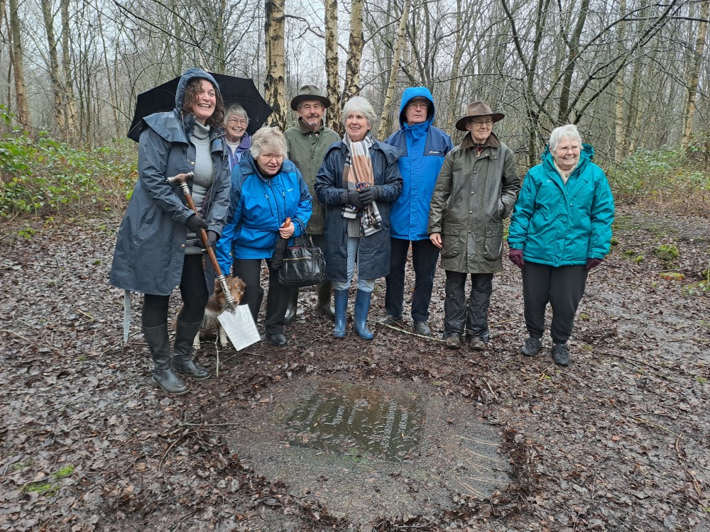 Members of Newbold Heritage Group celebrate the 100th anniversary by the concrete cap over one of the two shafts.