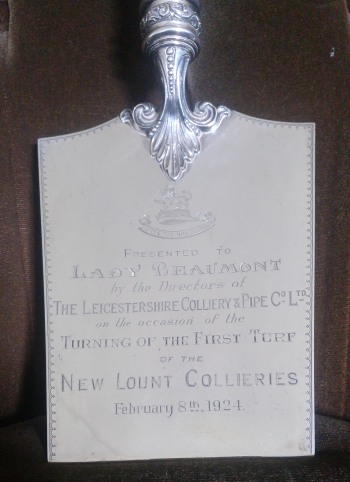 The incumbent Lady Beaumonts were often called into service for opening events, laying foundations etc. - like we'd have TV "celebrities" doing today. So the newly married Lady Renee Beaumont was invited to cut the first turfs for the sinking of the deep mines New Lount colliery in 1924.